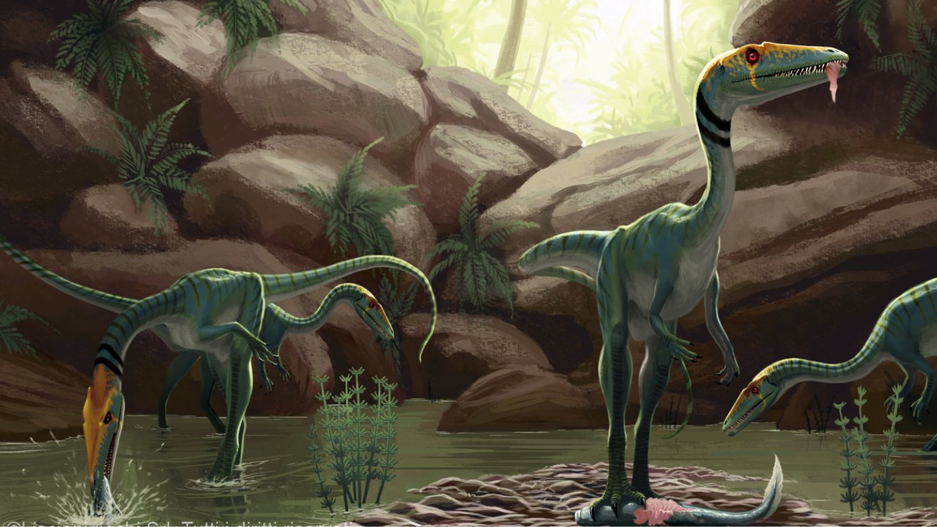 Невеликі динозаври хижаки Целофізис баурі (Coelophysis bauri). Фото: Liscianigiochi Srl. All Rights Reserved