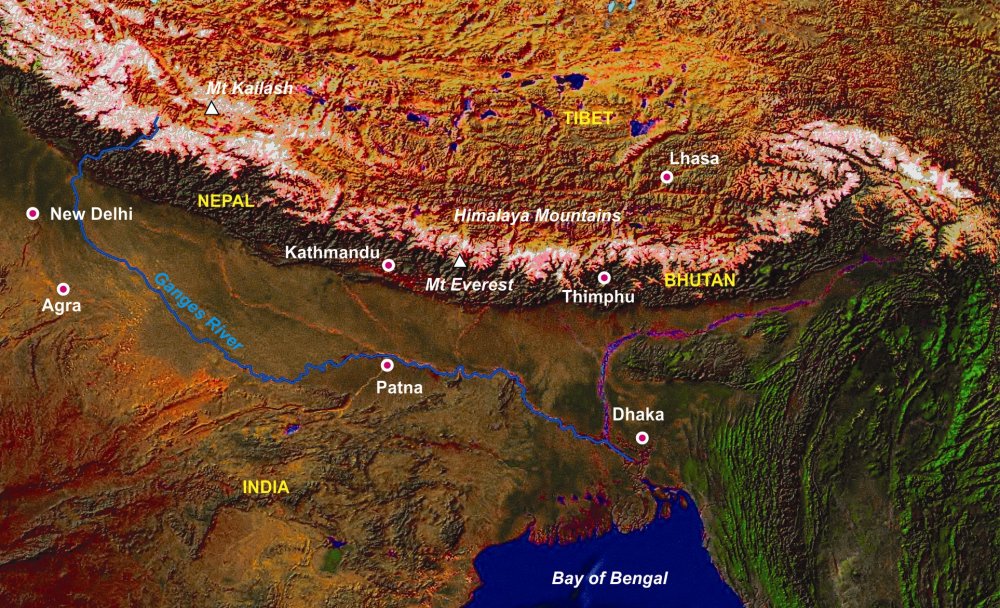 Карта, на которой изображены Гималаи. Фото: google.com
